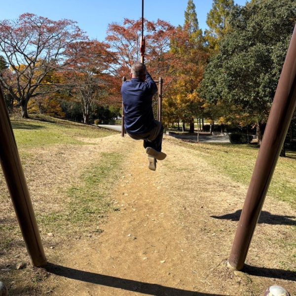 少し歩くとアスレチックがあり、子供たちが遊んでいたので