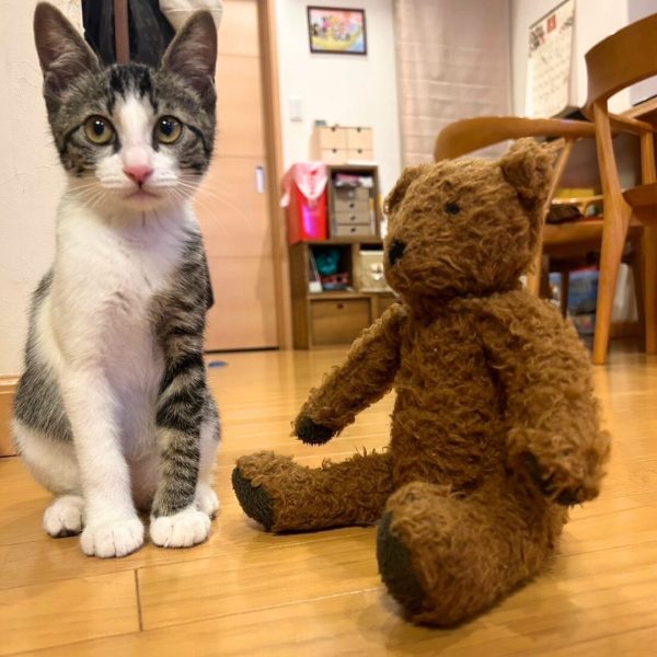 保護した日に我家にあったくまのぬいぐるみを兄弟と